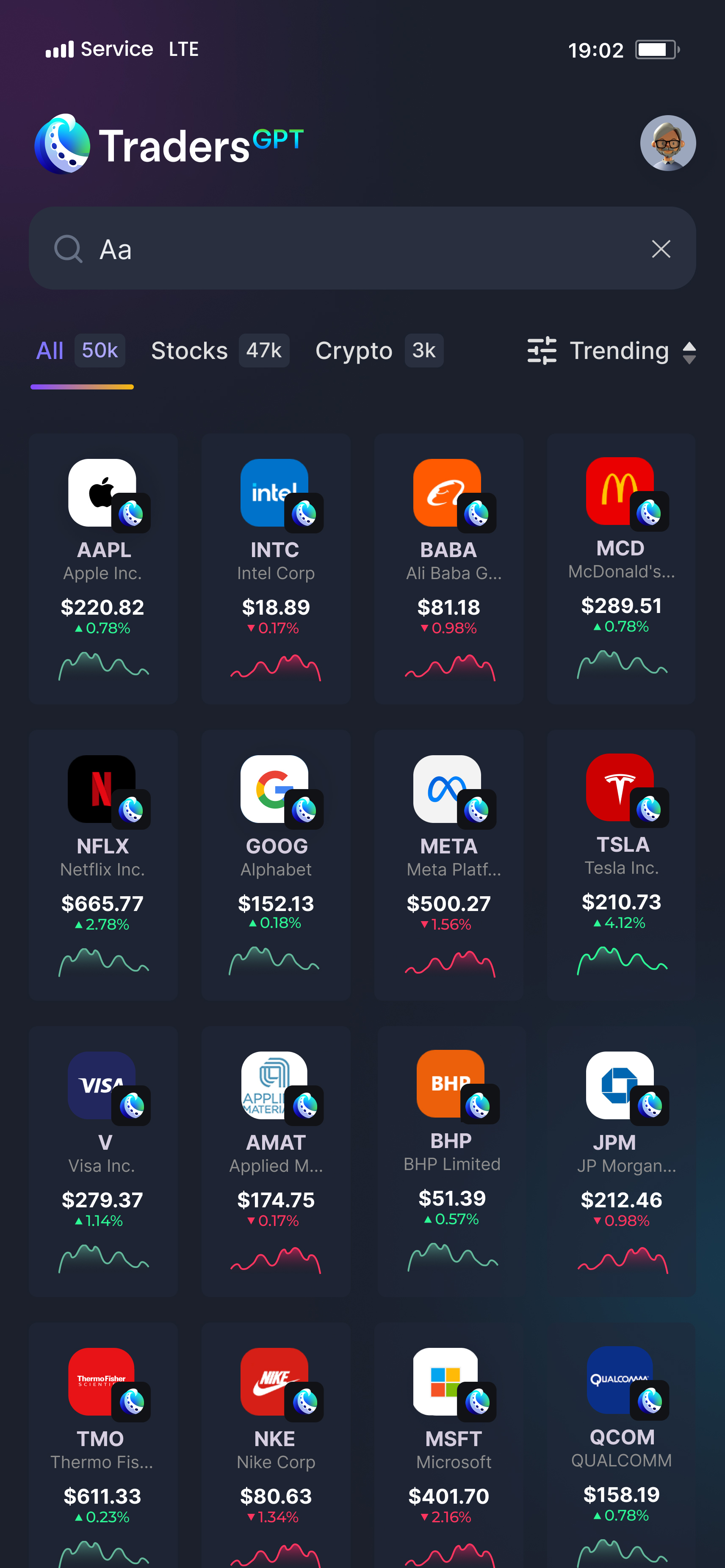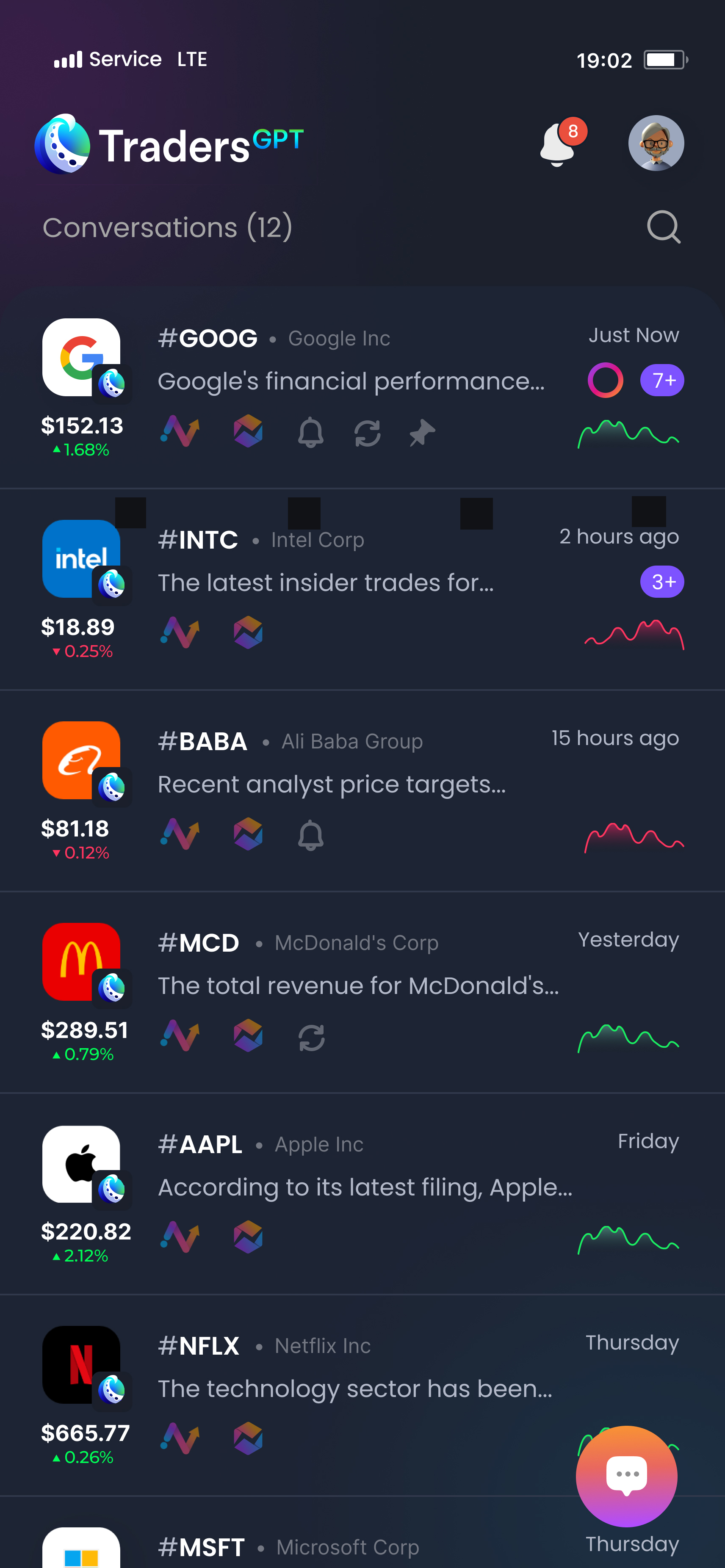 Engage in AI-powered dialogues about any publicly traded company or cryptocurrency. Ask questions, get insights, and uncover hidden opportunities through natural language conversations.